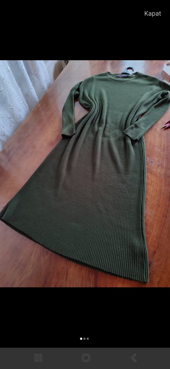 Kadınlar için uzun kollu, yuvarlak yakalı ve bol kesim elbise. Yumuşak sentetik kumaştan, pilili dokusu ve koyu haki renginde rahat bir modeldir. Günlük kullanıma uygundur. Marka temsilidir.