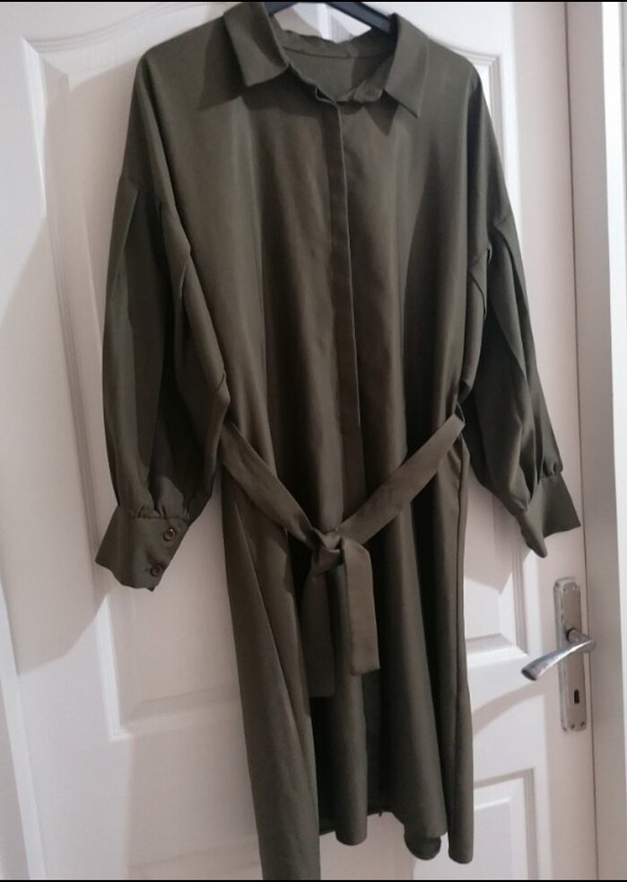 Kadın Haki Uzun Kollu Salaş Elbise ve ceket