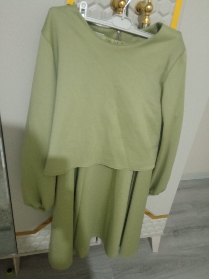 Haki renkte, uzun kollu, salaş kesim ve drapeli detaylı uzun tunik. Yumuşak sentetik kumaştan, minimal ve normcore tarzına uygun günlük kullanım için.