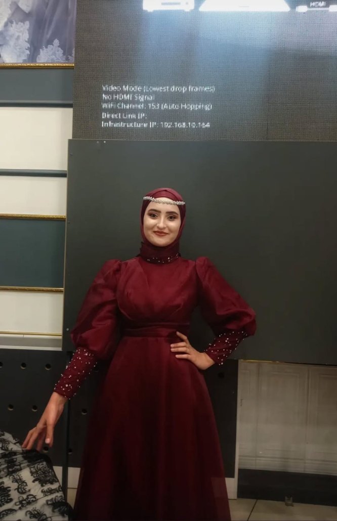 Kadın Haki Uzun Kollu Şık Abiye Elbise