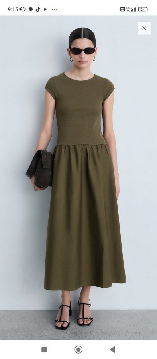 Kadın Haki Uzun Kolsuz Elbise