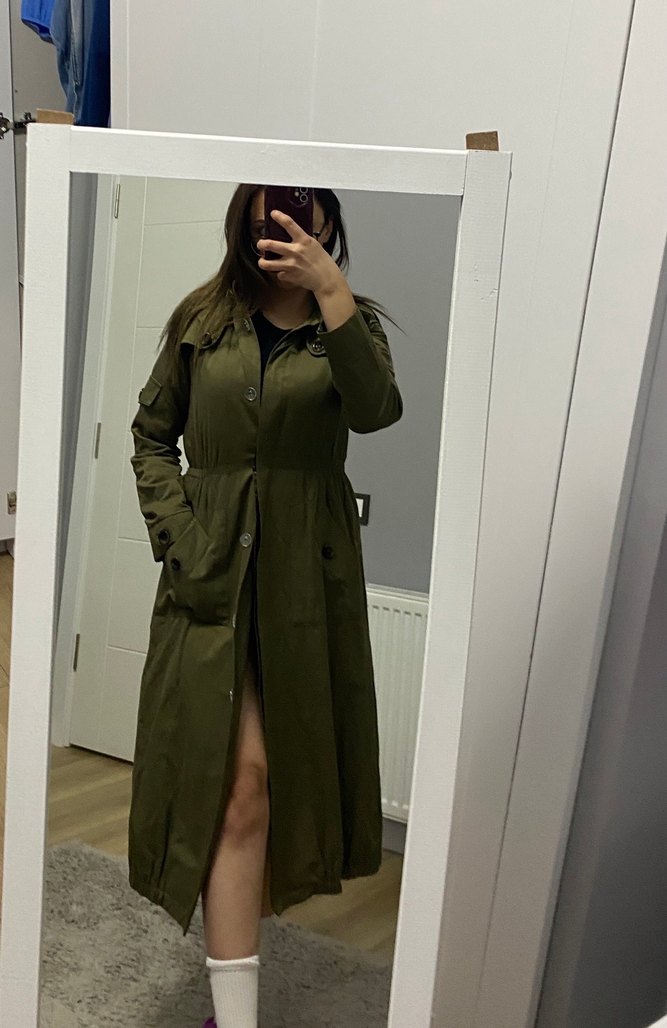 Kadın Haki Uzun Kuşaklı mont