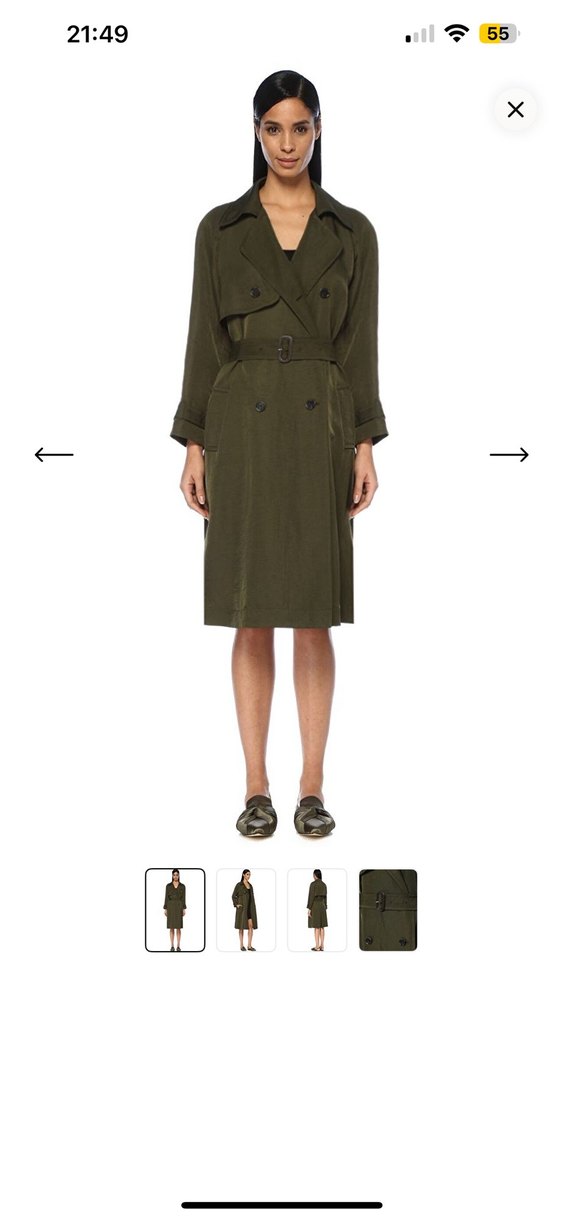 Kadınlar için kuşaklı, bol kesim ve yaka detaylı uzun trençkot. Koyu haki kamuflaj desenli, ipeksi dokulu, uzun kollu ve minimal normcore tarzda, günlük kullanım için uygundur.