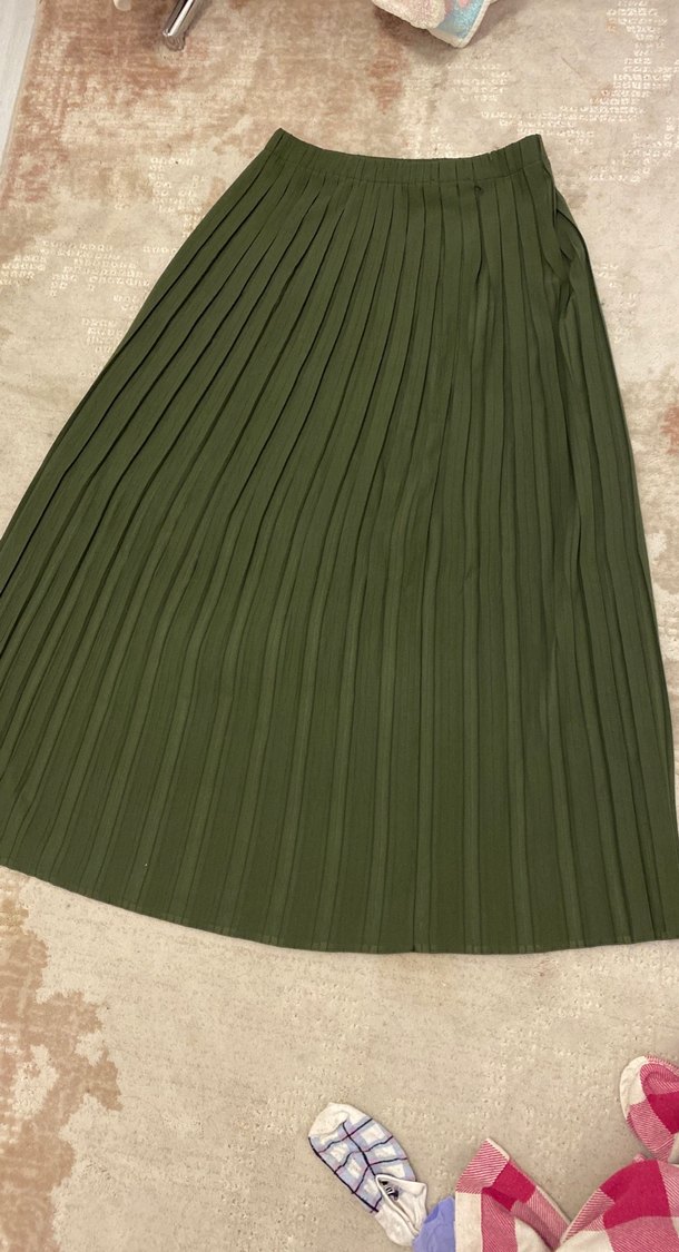 Kadın Haki Uzun Pileli Etek