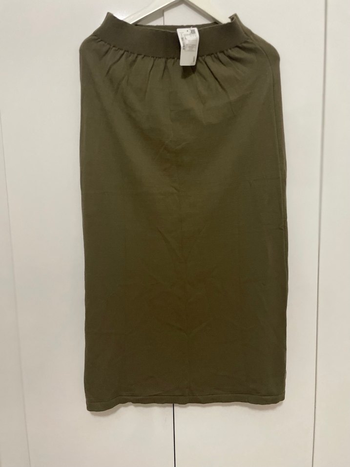 Kadınlar için triko koyu haki renkte, bol kesim ve uzun boy etek. Minimalist ve desensiz tasarımıyla günlük kullanıma uygun, zahmetsiz şıklık sunar. Ürün yeni etiketli