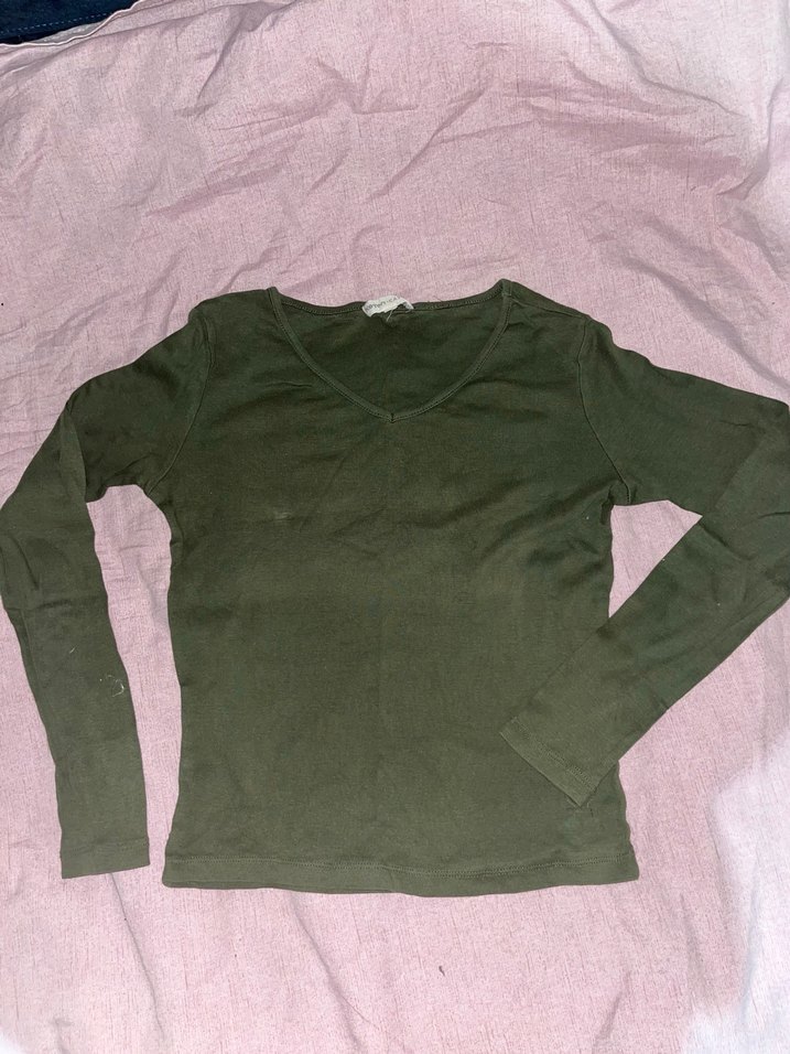 Kadın Haki V Yaka Uzun Kollu Kazak