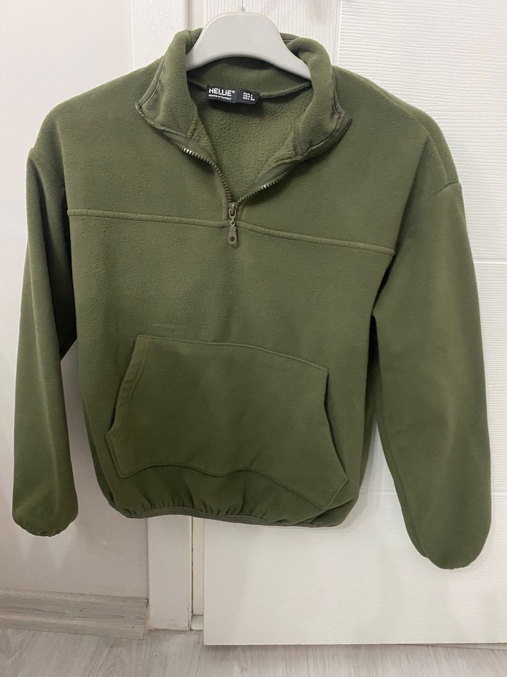 S ve M bedene uygundur. Kadın haki renkli, yarım fermuarlı, yüksek yakalı, uzun kollu ve bol kesim sweatshirt. Yumuşak ve sıcak kumaştan, Polarlıdır. rahat ve günlük kullanıma uygun. Önde cep bulunur.