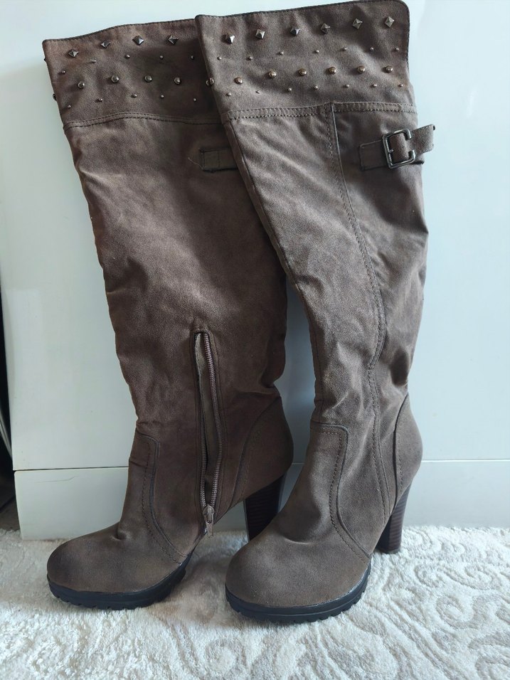 Kadınlar için dizüstü, yüksek topuklu, tokalı ka süet botlar. Gri renkte, desen içermeyen, günlük kullanıma uygun bohem tarzda. SIFIR HİÇ GİYİLMEDİ CASA ROSSİ MARKA 39 NUMARA