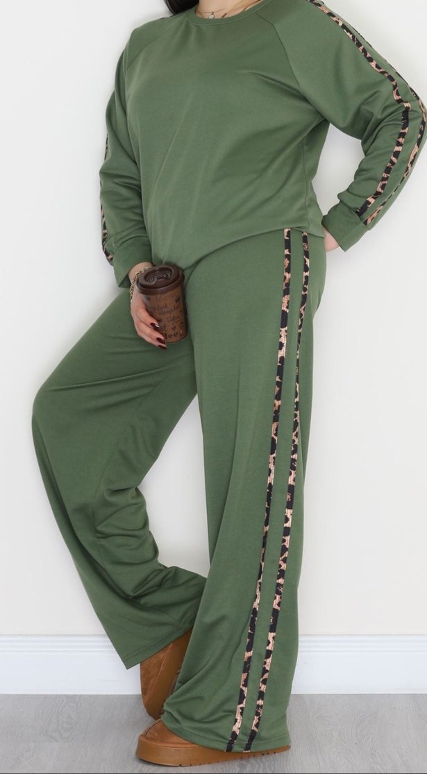 Kadın Haki Yılan Desenli Bol Kesim Eşofman Takımı