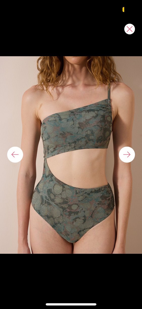 Fitted kesim, haki renkli, koyu yılan desenli ve dantelli kadın mayo. Askılı ve çağdaş mini kesime sahip, açık hava kullanımı için uygun.