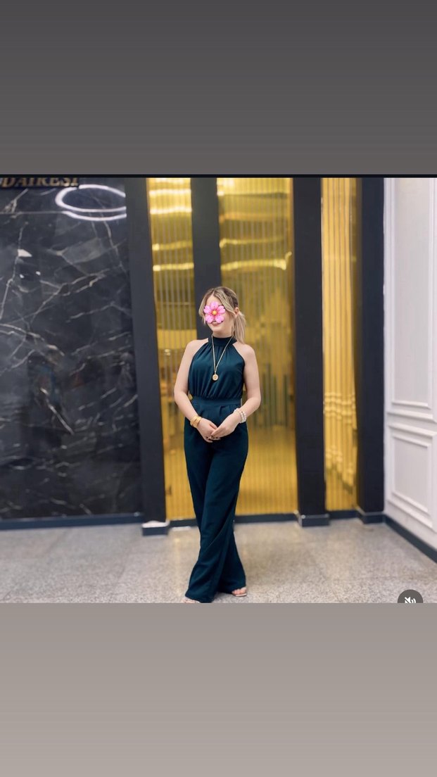Kadın Halter Yaka Uzun Tulum - Altın Tonları