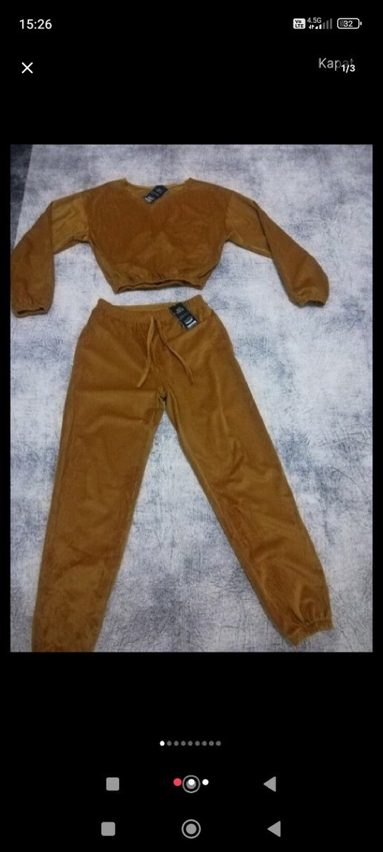 Kadın hardal rengi eşofman takımı, uzun kollu ve bisiklet yaka üstü ile bol kesim pantolondan oluşur. Yumuşak, sıcak kumaştan yapılmış rahat ve şık bir tasarımdır. kumaşı kadife kumaş 40 beden hiç kullanılmamış etiketli ürün