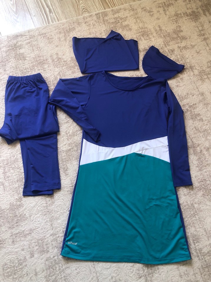 Bir kere tek giyildi büyük geldiği için satıyorum 40-42-44 rahatlıkla girebilmektedir herhangi bir sıkıntısı yoktur sıfır rengindedir eşarp bone pijama tunik olarak 4 parçadan oluşmaktadır
