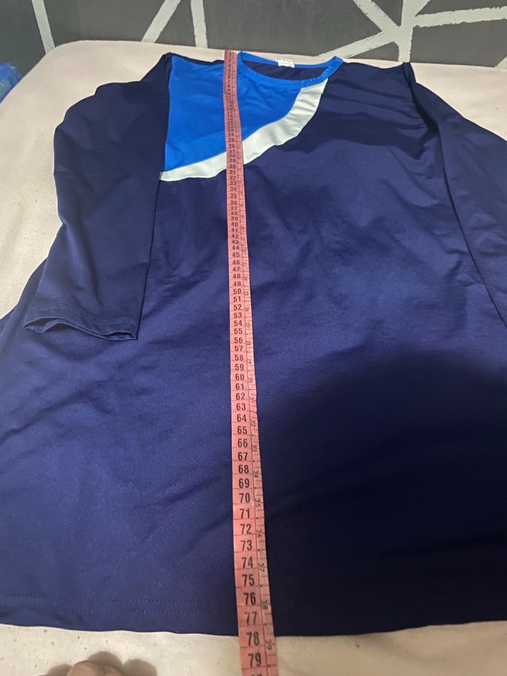 Yuvarlak yaka ve uzun kollu, mavi desenli, su çekmez yapışmaz haşema