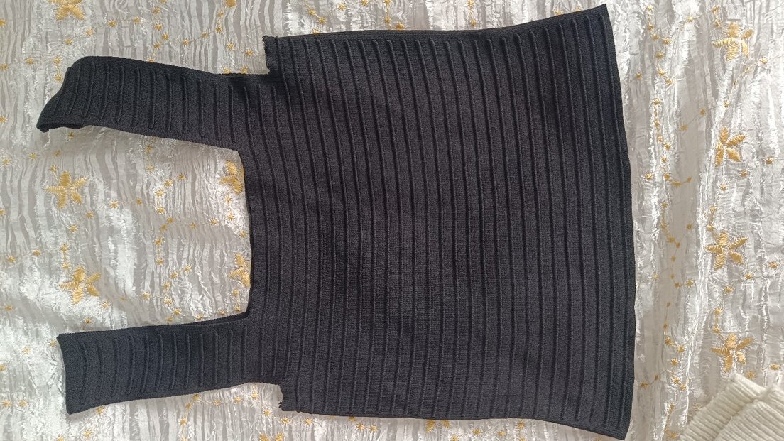siyah tek renk, piliseli, triko kumaştan yapılmış, tekne yaka ve ince askılı, mini kesim kadın elbisesi. Rahat ve şık sokak stili için uygundur.