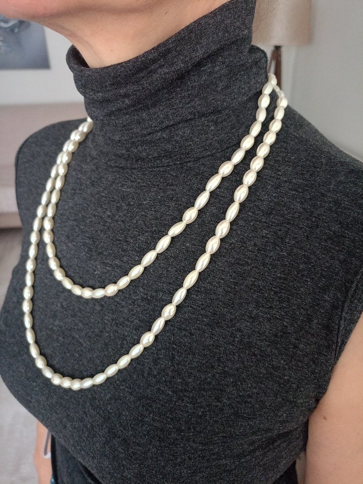 Beyaz boncuk inci görünümlü, midi uzunlukta kolye, klasik ve günlük kullanıma uygundur. Desensiz tasarımı normcore ve Paris tarzını tamamlar.