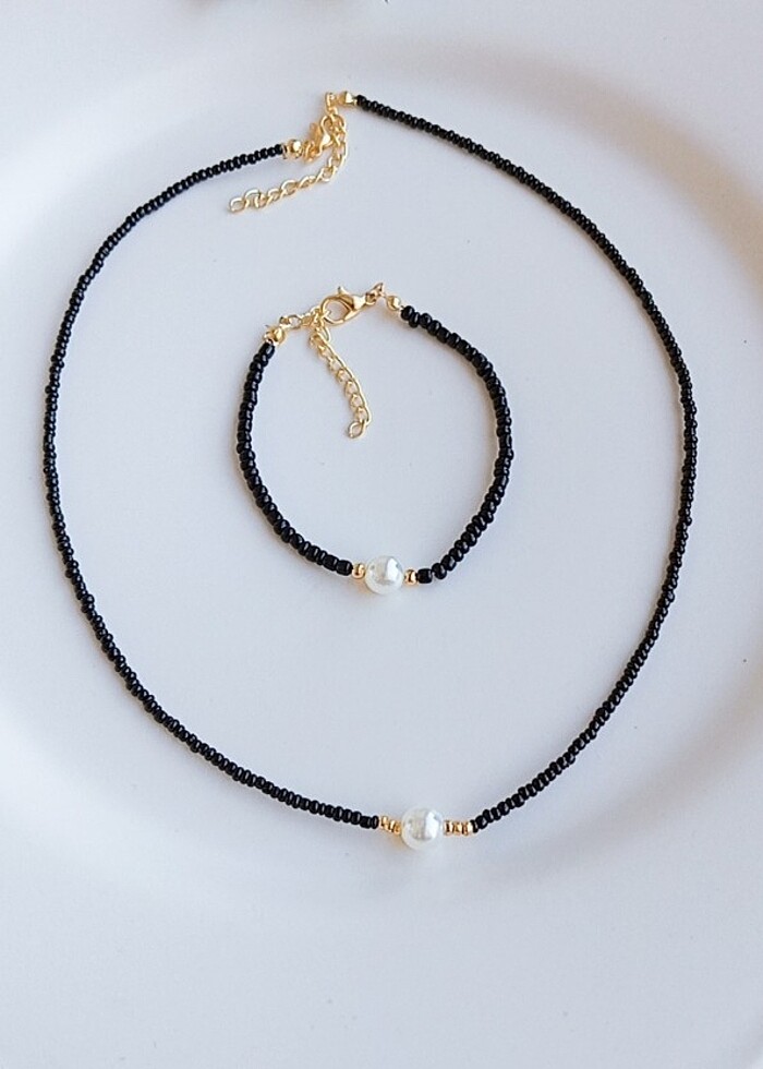 Kadın İncili Boncuk Kolye Bileklik Seti