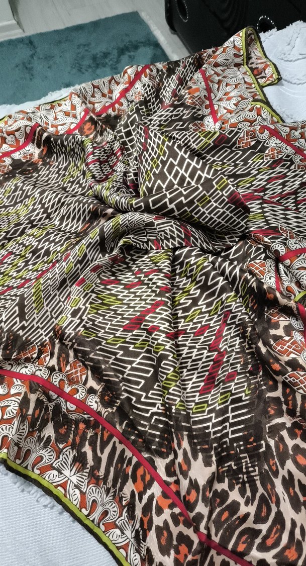 Kadınlar için pilili, çok renkli bohem desenli, yumuşak sentetik kumaştan fular. Bohem, hippie ve retro tarzlara uygundur.