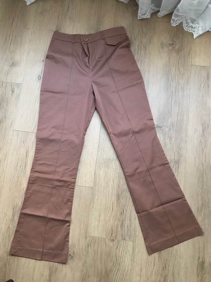 normal boy kadın kumaş pantolon. Düz ve sade tasarıma sahip, düğmeli ve cepli, günlük kullanıma uygun rahat bir modeldir.