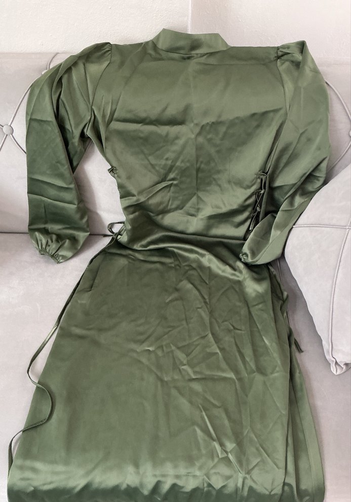 Kadınlar için janjan haki yeşili tesettür abiye bir kez kullanıldı