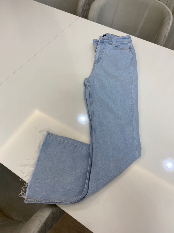 Paçasında küçük bir leke vardır ama fark edilmiyor. Beli 33 cm. Boyundan kesme işlemi yapılmamıştır 98 cm’dir. Markasını paylaştım.