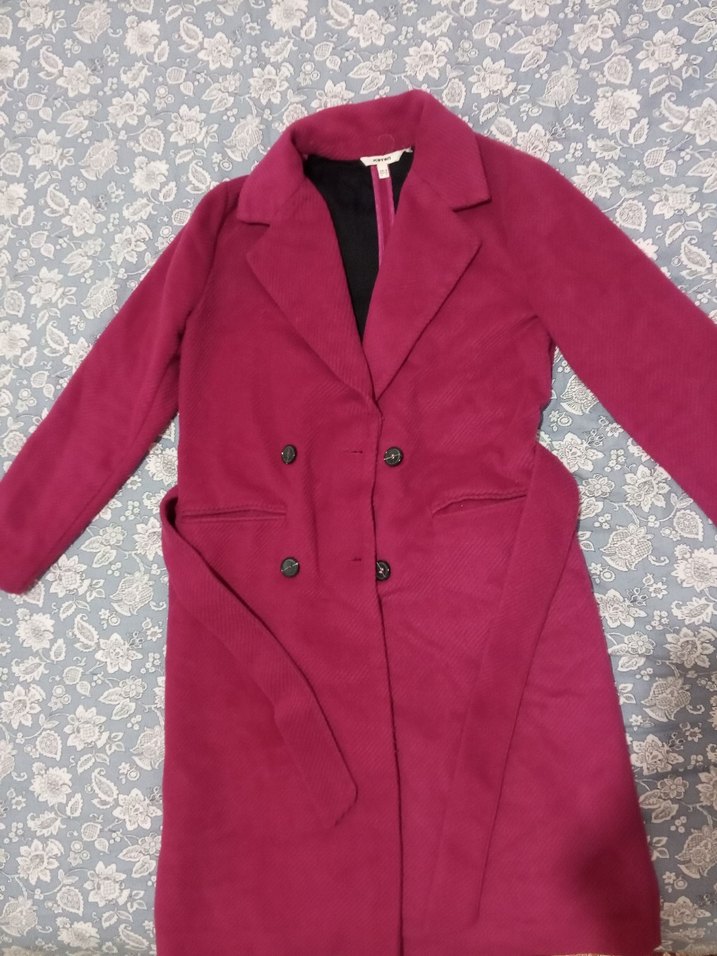 Kadın kaban, düğmeli ve yaka detaylıdır. Yumuşak ve sıcak kumaştan üretilmiş, uzun boy ve normal kesimlidir. Bordo rengi günlük kullanıma uygundur.