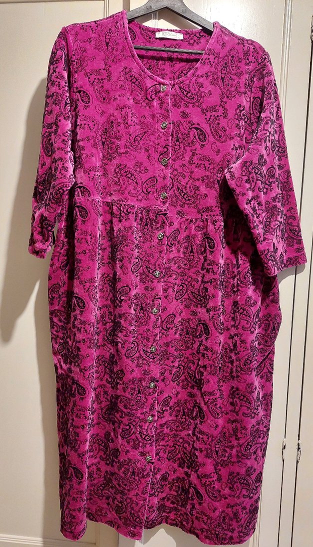Ürün sıfır hiç kullanılmadı hediye olarak alınmıştı XL BEDEN tertemiz yumuşak kadife desenli önden taşlı düğme fuşya renk yarım kol cepli çok şık güzel bir ev elbisesi veya sabahlik olarak kullanabilirsiniz 42 44 nedene olur biraz esnek koltuk altından 60cm boyu 112 cm dir. geçen yıl alındı hiçbir sorunu yok sadece aldigim yerden askıdan aldığım için bir kere yikadim ve bir kere denendi %80 coton dur. MARKA TEMSİLİDİR ZARA DEGILDIR. SON FIYATIM büyük bir ürün olduğu için kargo ücreti çıkıyor bana