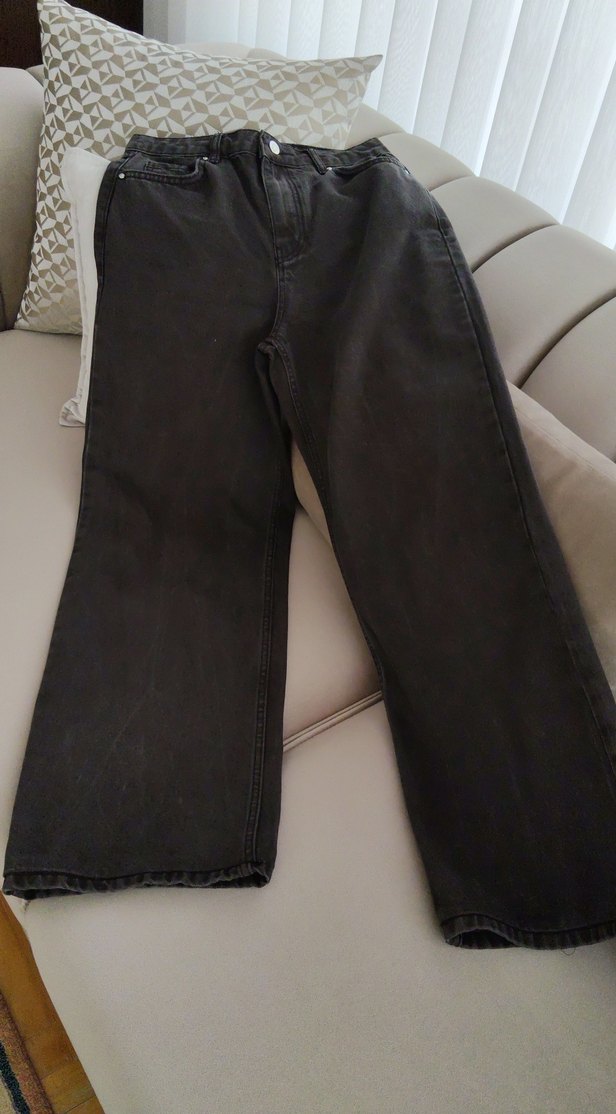 Kahve renkte, bol kesim ve denim pantolon. Tokalı detaylarıyla günlük kullanıma uygun rahat ve sade bir stil sunar.