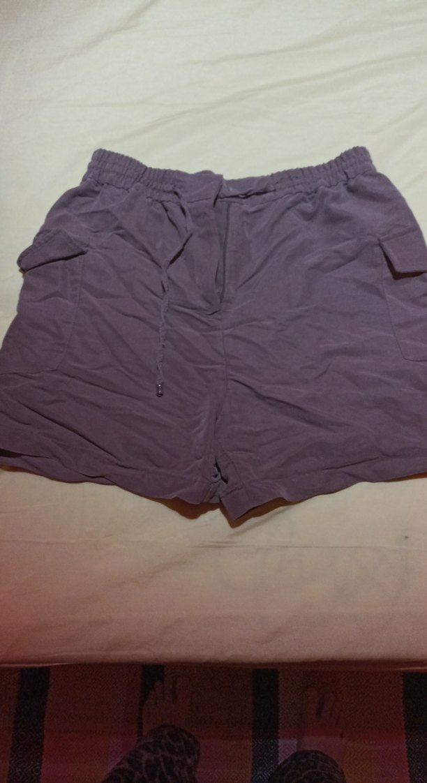 Kadınlar için kahve keten mini şort, bol kesim ve lastikli bel ile rahat dış mekan kullanımı için uygun.