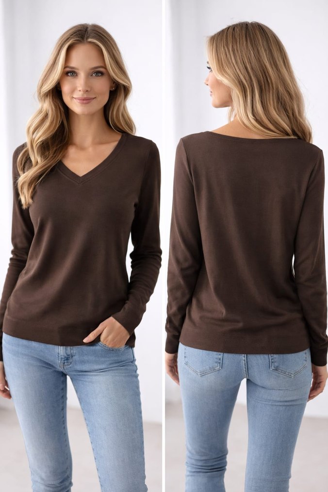 Kadınlar için oysho kumaştan yapılmış, kahverengirenkte, uzun kollu ve bisiklet yaka, sade ve desen içermeyen, günlük rahat kullanıma uygun dar kesim bluz