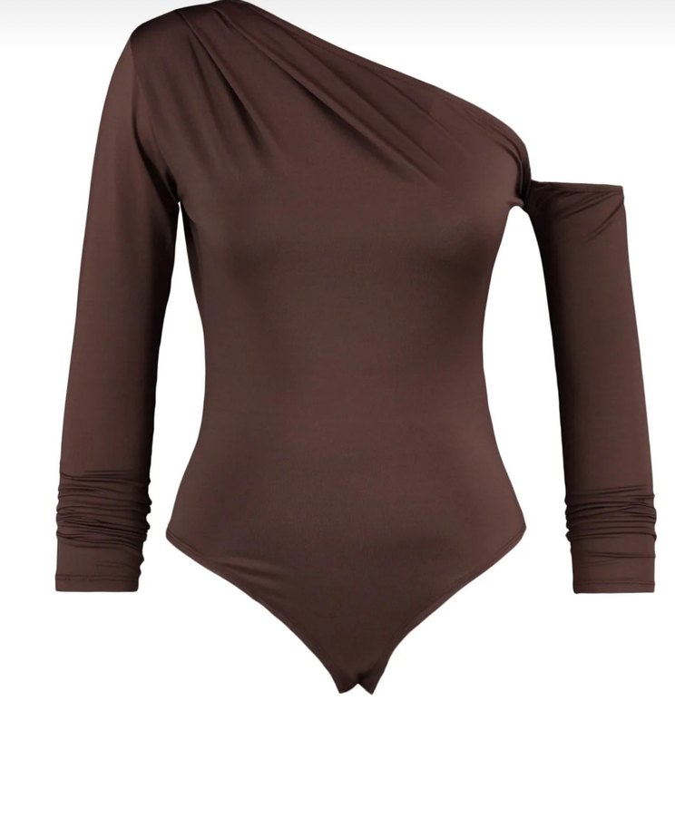 Kadın Kahverengi Asimetrik Yaka Çıtçıtlı Body. Bir kez giyildi. Hiç bir deformesi yoktur. Marka temsilidir.