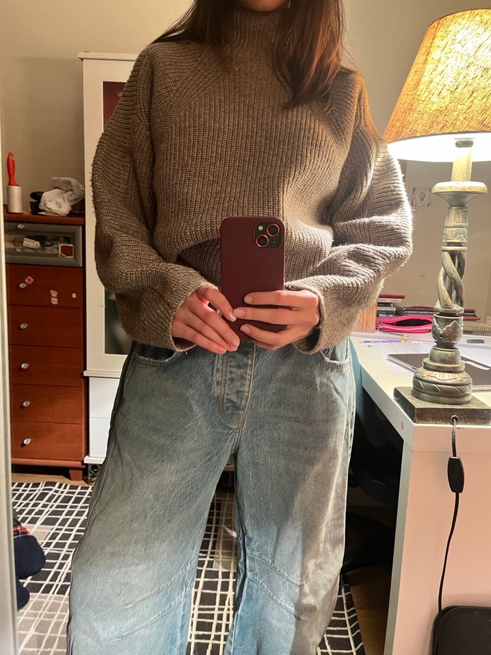 Kadın Kahverengi Balıkçı Yaka Örgü Kazak
