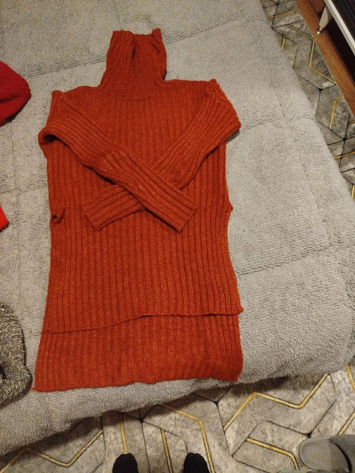 Kadınlar için balıkçı yaka, uzun kollu, kahverengi triko kazak. Fitted kesimi ve midi boyu ile günlük kullanıma uygun sıcak bir parça. kiremit rengi dir boğazlı giyemiyorum o nedenle satışta