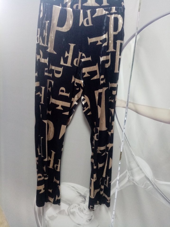 Kadınlar için kahverengi baskılı, pilili, bol kesim uzun kumaş pantolon. Sentetik kumaştan, günlük sokak stiline uygun.
