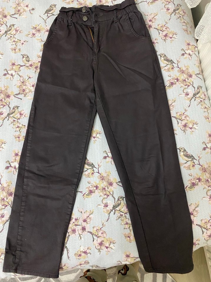 Kadınlar için tasarlanmış, rahat kesim ve midi boyda, koyu kahverengi sentetik kumaştan yapılmış pantolon. Kemer detayına sahip, günlük kullanıma uygun sade tasarım. Bel kısmında renk değişimleri mevcut. İç kısımda kaldığı için dışarıdan gözükmüyor.