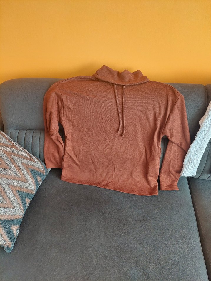 Yumuşak kumaştan, boğazlı ve rahat kesim kahverengi uzun kollu sweatshirt. Desensiz, rahat ve gündelik sokak stili için uygun.