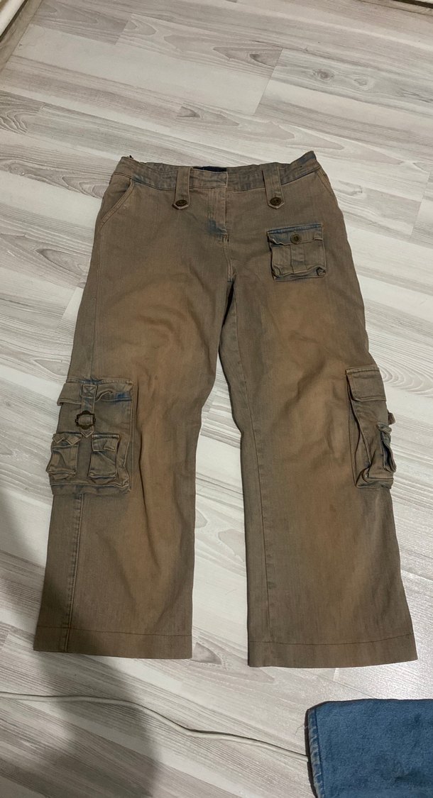 Kadın kahverengi denim pantolon, bol kesim ve kemer detaylıdır. Çoklu cepleri ve midi boyuyla günlük kullanıma uygundur. 150 boylarında iseniz alınız m l uyar