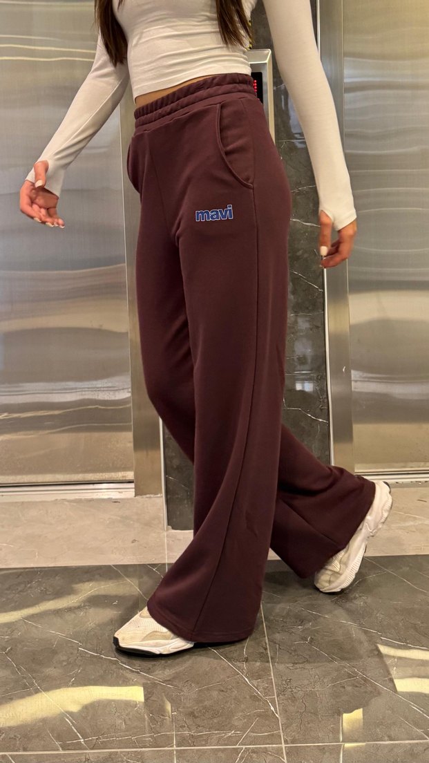 Yumuşak ve sıcak dokulu, kahverengi bol kesim midi uzunlukta kadın sweatpant. Yan cepler ve "mavi" logo nakışı bulunur. Rahat kullanım için uygundur. ♀️