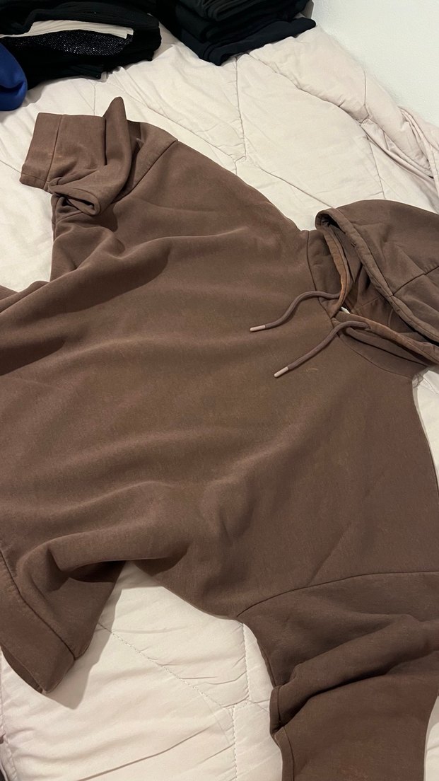 Kadın kahverengi bol kesim sweatshirt, görseldeki gibi defoları var bu yüzden ona göre bir fiyatta satıyorum