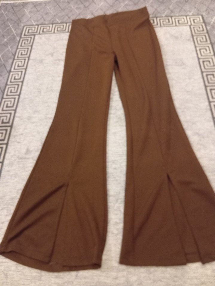 Yumuşak ve sıcak kumaştan, kahverengi bol kesim uzun pantolon, yan yırtmaçlı. Rahat ve bohem tarz için uygundur. ♀️