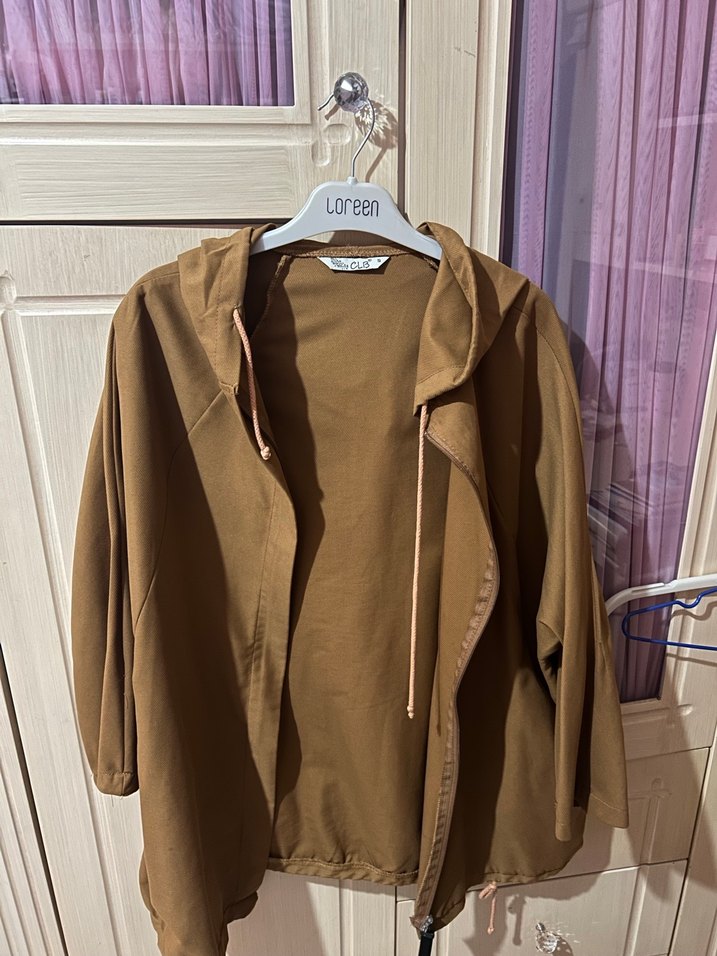 Kadın kahverengi ceket, bol kesim, drapeli tasarım ve kesik yaka ile uzun kollu, günlük sokak stili için uygun.