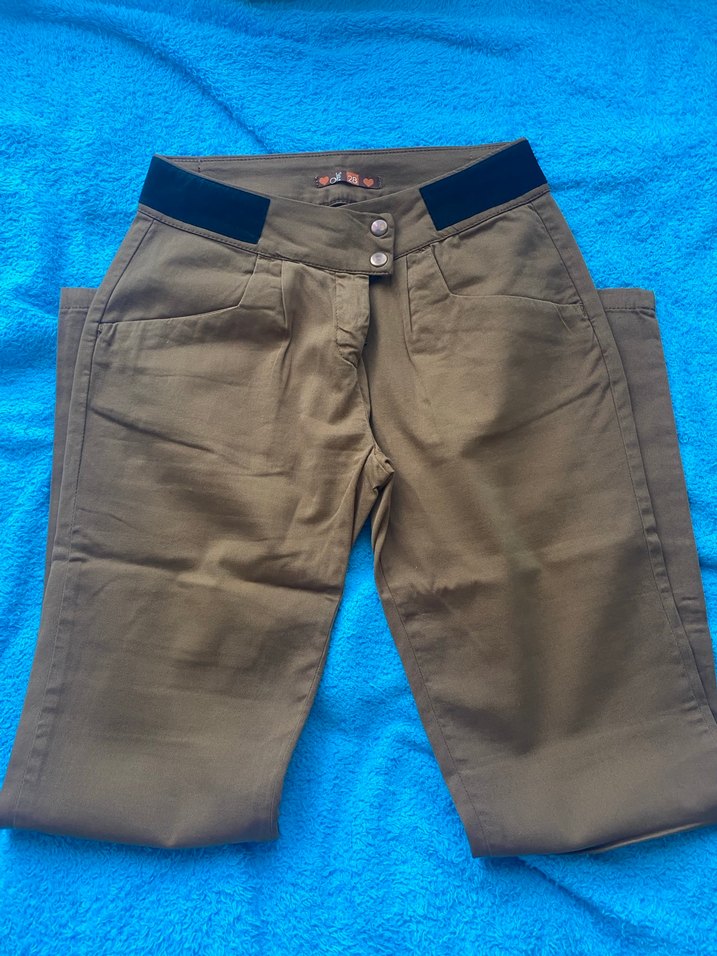 Bel detaylı taba renk cigarette kesim pantolon. Rahat kesim ve desensiz tasarımla günlük sokak stiline uygundur.