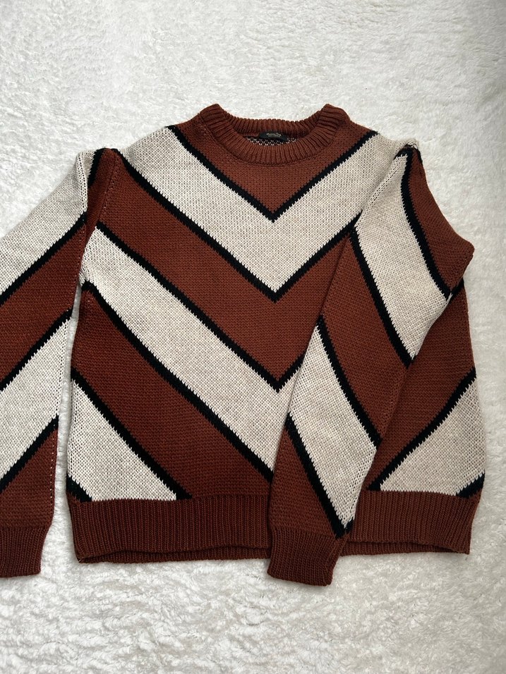 Bu kahverengi örgü kazak, uzun kollu ve yuvarlak yaka tasarımıyla bol kesimdir. Hiç giyilmedi yıkanmadı alındığı gibi. ❤️