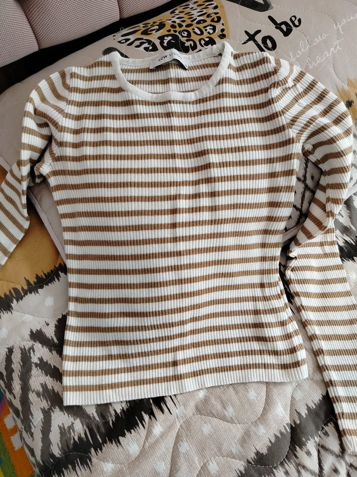 Kadın Kahverengi Çizgili Triko Sweatshirt