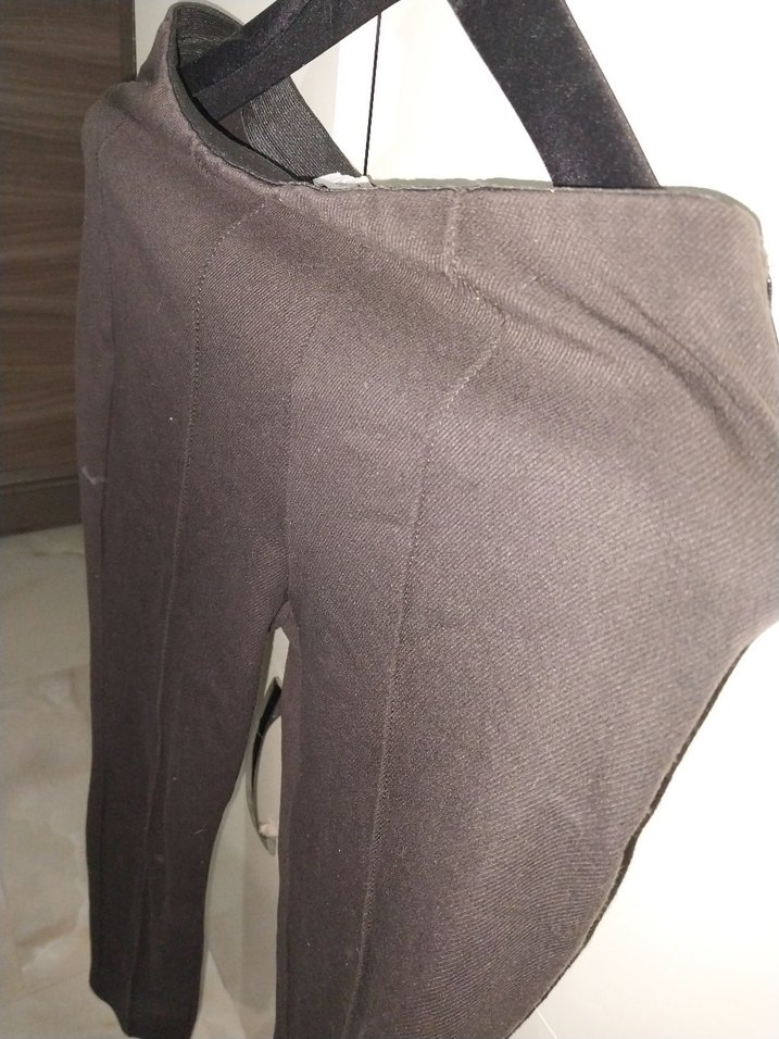 Tayt pantolon, Kahverengi dar kesim kumaş pantolon, fermuarlı, midi boy, ofis kullanımı için uygun düz dokulu.