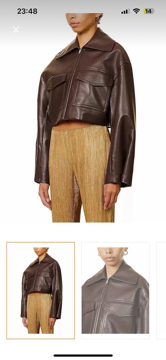 Kadınlar için kahverengi parlak deri ceket, pilili detaylar ve kesik yakaya sahip. Strappy kollu, midi boy ve normal kesim, ofis kullanımı için uygun. Marka temsilidir markası the one shine a aittir. Deformesi yoktur. Aynı ürünün siyahı da mevcuttur isteğe bağlı. Marka temsilidir, markası: the one shine’a aittir.