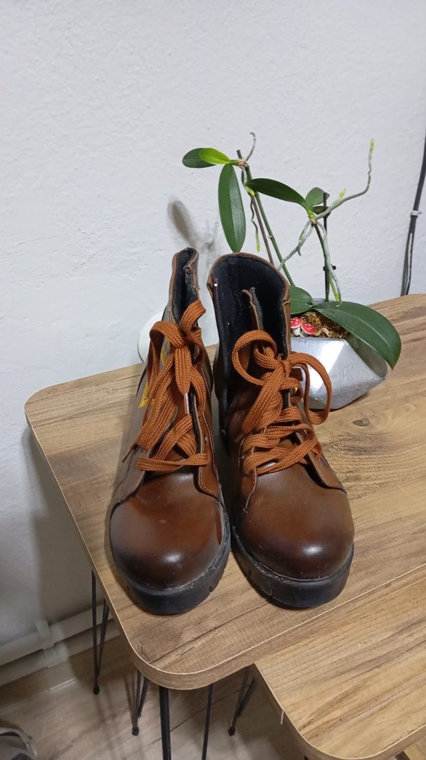 Kahverengi deri kadın botları, dolgu topuklu ve tokalı detaylı, minimalist ve desensiz tasarımıyla günlük kullanıma uygun.