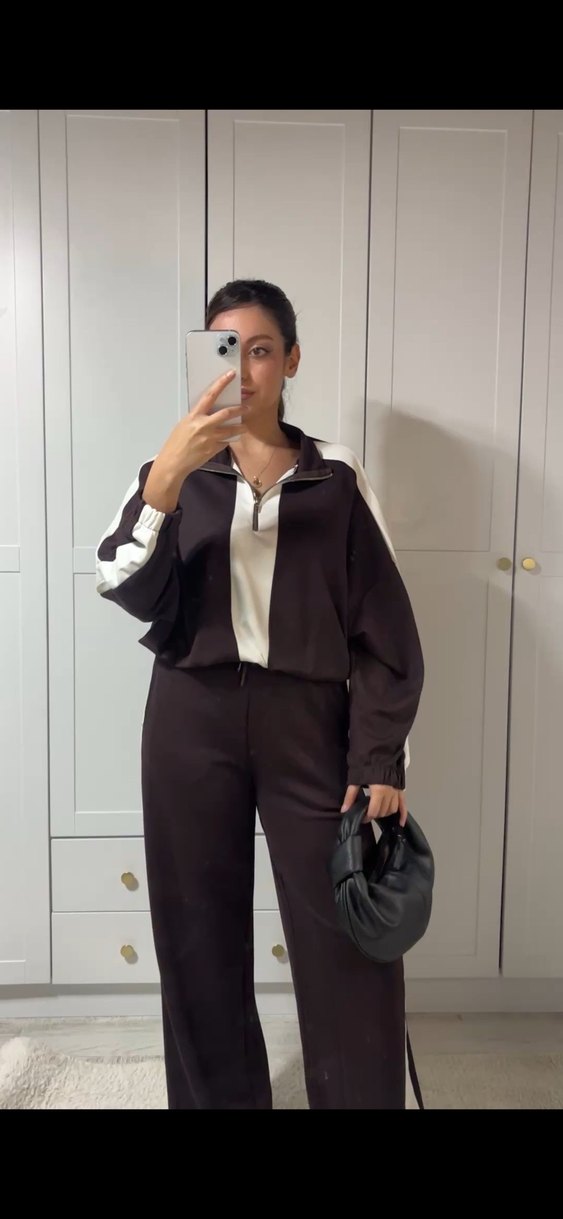 Kadın Kahverengi Deri Eşofman Takımı