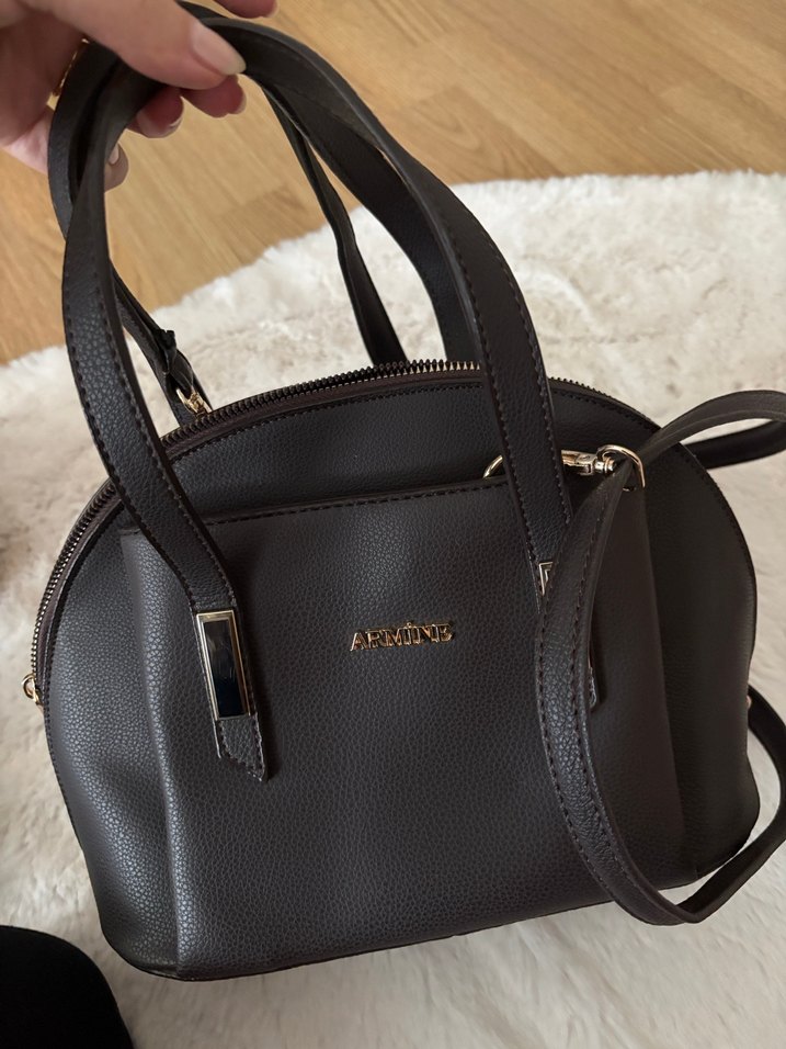 Kahverengi deri fermuarlı çanta, modern klasik tasarıma sahip, günlük kullanıma uygun. Düz ve sade, Paris esintili deseni bulunur. Hem elde hem omuzda taşınabilir.