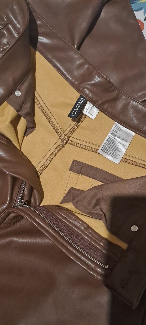 Kadın Kahverengi Deri Fermuarlı pantolon